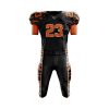 An American football uniform is designed to provide protection and team identity during the game. It includes a jersey, padded pants, helmet, and shoulder pads. The materials are durable and breathable to ensure comfort and safety. These uniforms also feature team colors, logos, and player numbers for easy recognition on the field.