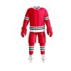 An ice hockey uniform is designed to provide warmth, protection, and team identity on the rink. It includes a thick jersey, padded shorts, and long socks worn over safety gear. The material is durable and flexible for easy movement during play. Team logos and player numbers are printed for recognition and pride.
