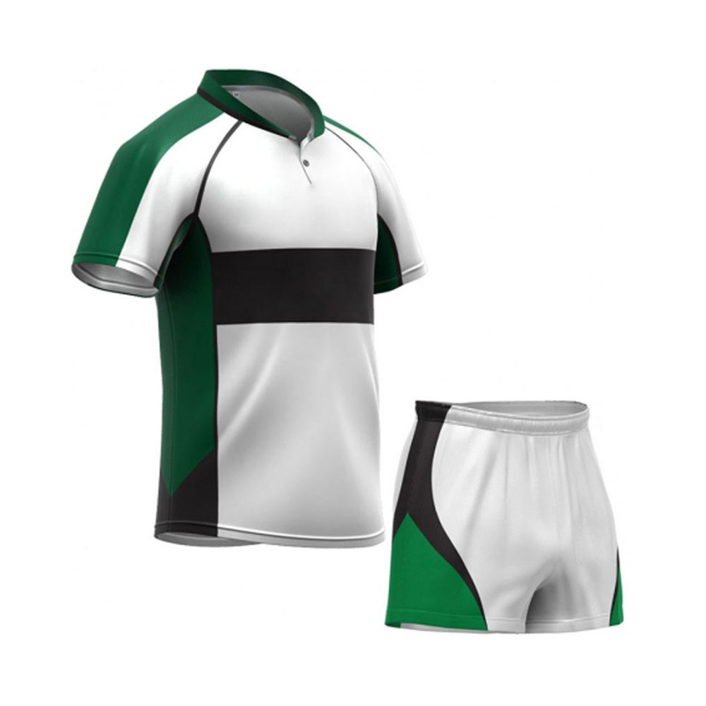 A rugby uniform is built for strength, comfort, and durability during tough matches. It includes a fitted jersey, sturdy shorts, and long socks. The fabric is strong yet breathable to handle rough play. Team colors and logos are displayed to show identity and pride.