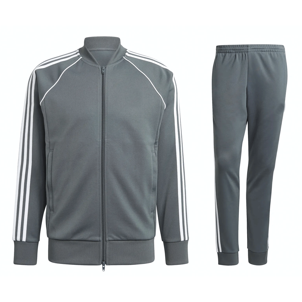 A tracksuit is a matching set of a jacket and pants designed for sports or casual wear. It is made from comfortable, stretchable fabric that allows easy movement. Tracksuits help keep the body warm during workouts or outdoor activities. They are perfect for training, travel, or relaxed everyday style.